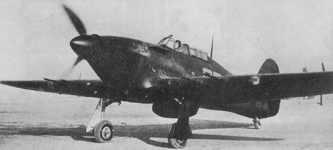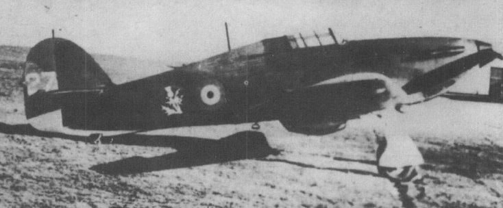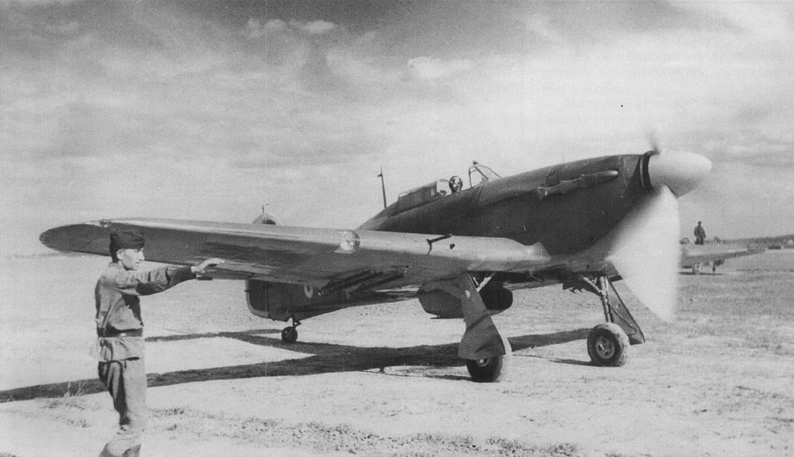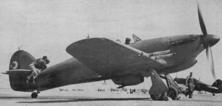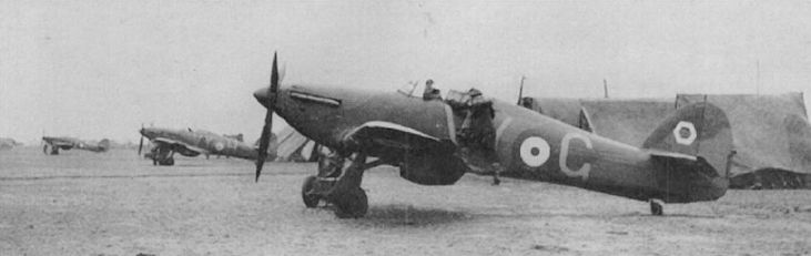 Типичный Hurricane ранней постройки, сфотографированный в Северной Африке - на самолете установлен противопыльный фильтр. На момент вступления в войну Италии на вооружении 80-й эскадрильи имелся один Hurricane.