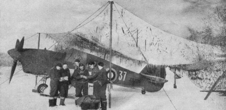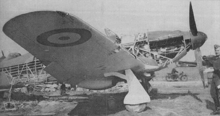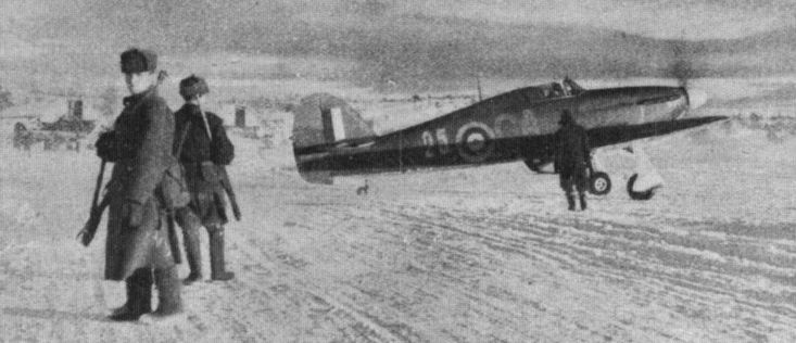 Подбитый "Харрикейн", совершивший вынужденную посадку под Архангельском