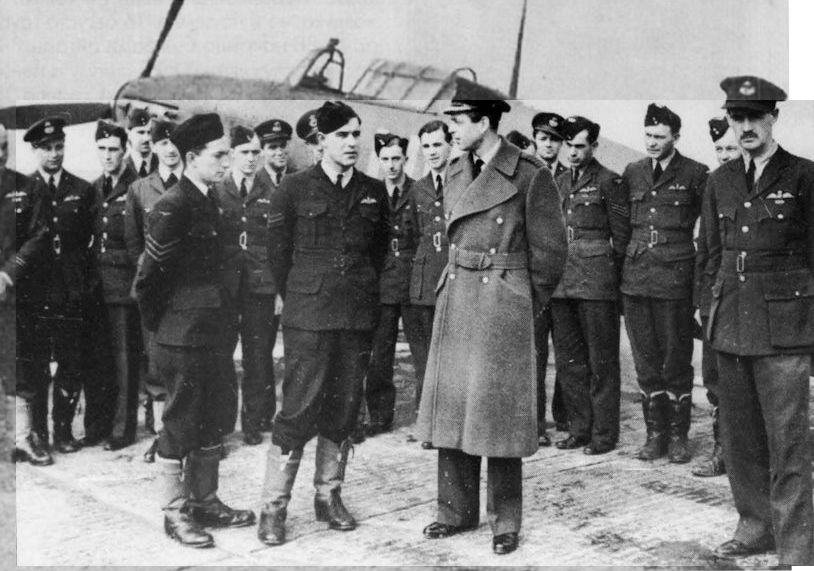 Принц Кентский во время посещения эскадрильи "Сити оф Лондон" разговаривает с двумя первыми австралийскими пилотами-добровольцами