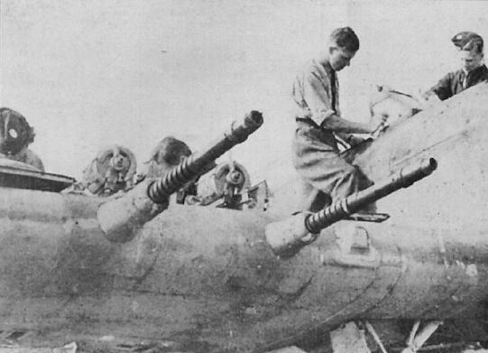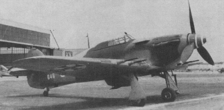 "Харрикейн" X с советским вооружением (две пушки ШВАК и два пулемета УБТ) на испытаниях в НИИ ВВС