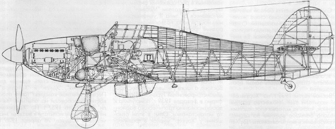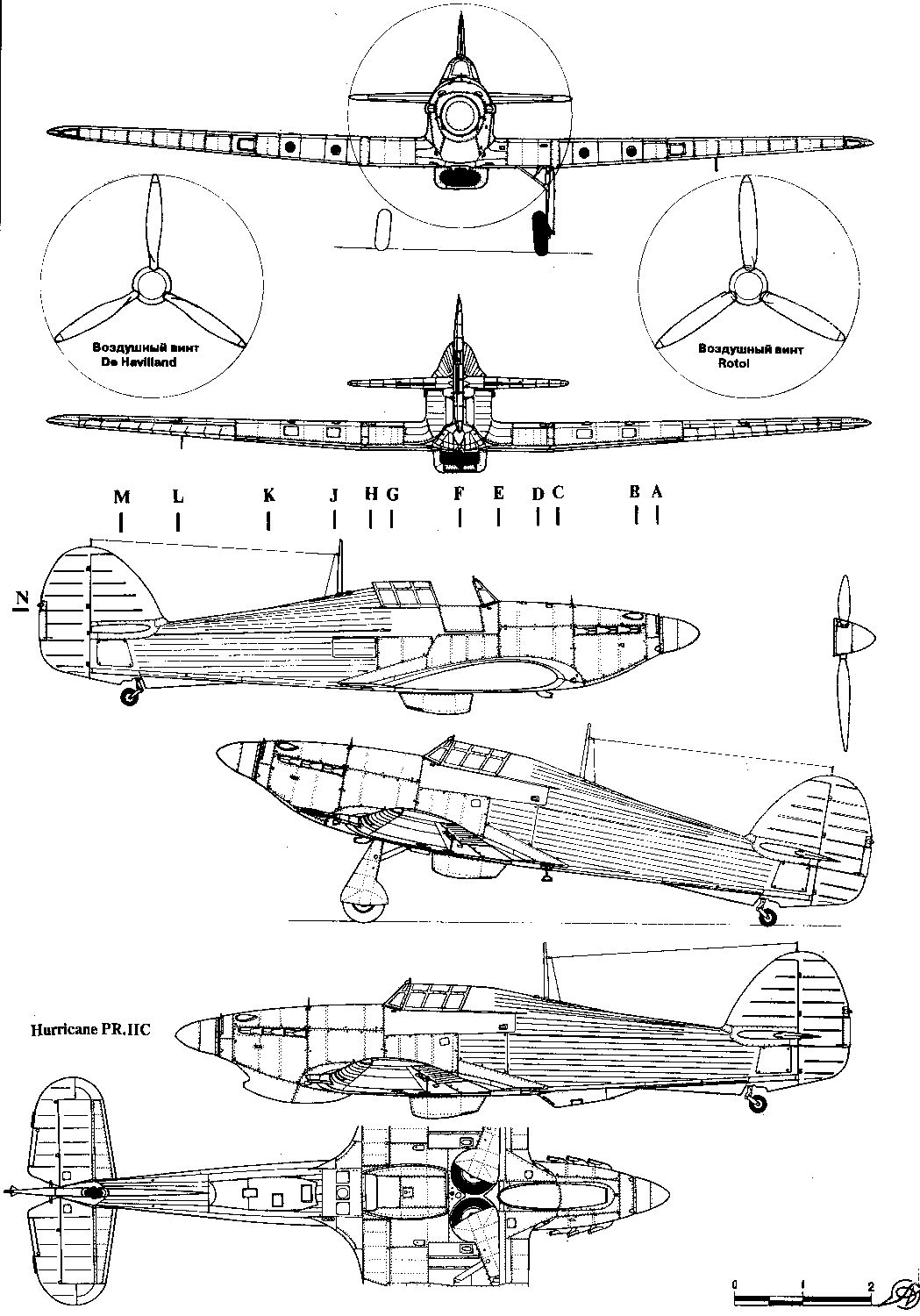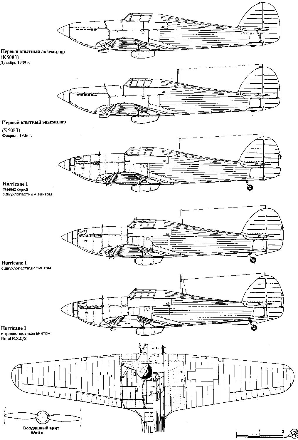 Самая первая компоновочная схема истребителя "Харрикейн", опубликованная в 1940г. в журнале "Airplane"