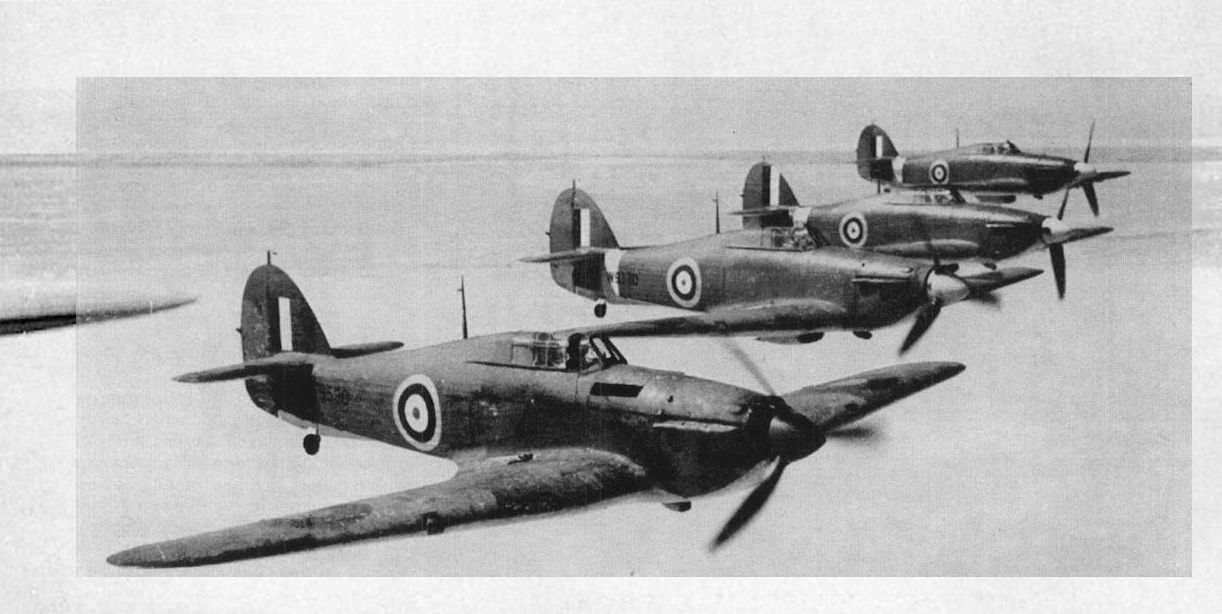 Самым ценным активом союзников в первые месяцы войны являлся истребитель Hurricane. Эти Mk I (еще без противопылевых фильтров Vokes) сняты во время перегоночного полета из Такоради.Самолёты на фотографии: Hawker Hurricane - Великобритания - 1935
