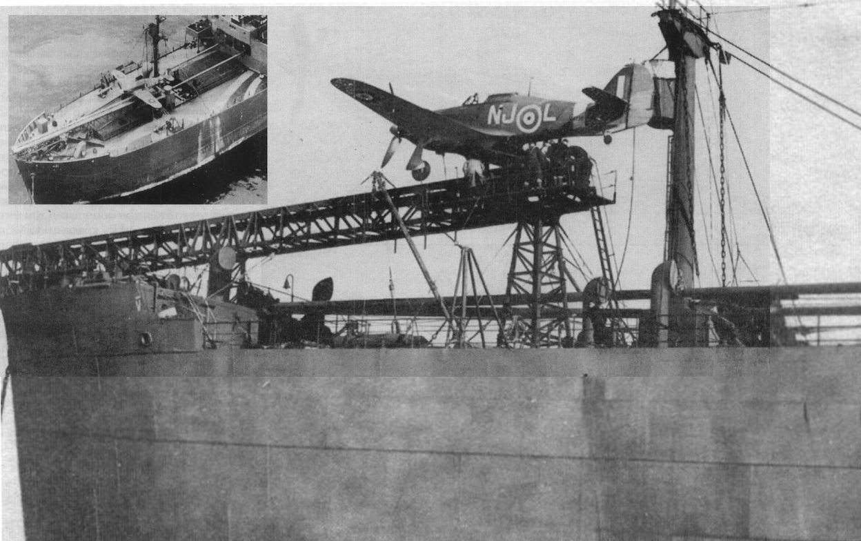 Регистрационный номер: V6756 "Си Харрикейн" IA на катапульте одного из судов типа САМ