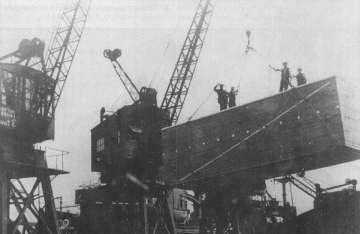 Погрузка контейнеров с истребителями в одном из британских портов, осень 1941 г.