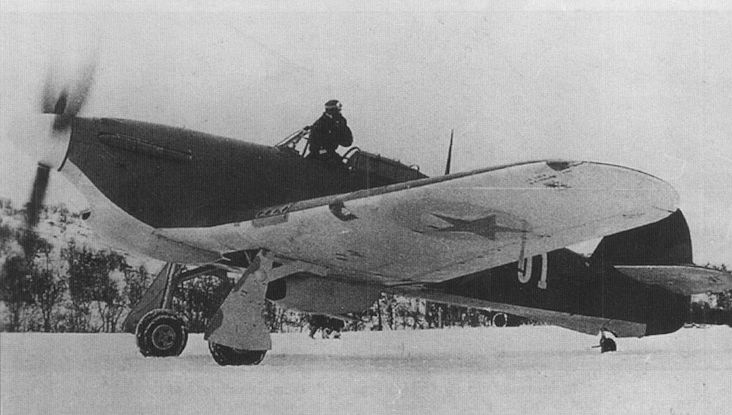 Бывший истребитель 151-го крыла ("Харрикейн" II/Trop), ставший персональным самолетом командующего ВВС Северного флота генерал-майора А. А. КузнецоваСамолёты на фотографии: Hawker Hurricane - Великобритания - 1935