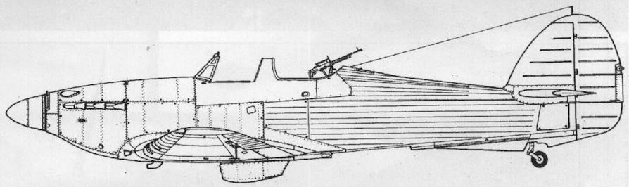 "Харрикейн", переделанный в двухместный корректировщик с пулеметом ШКАС в задней кабине