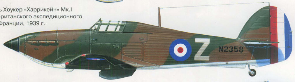 Регистрационный номер: N2358 Истребитель Хоукер «Харрикейн» Mk.I из состава британского экспедиционного корпуса во Франции, 1939 г.
