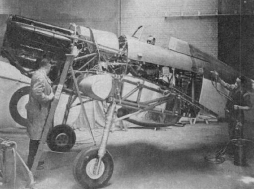 DOCKED: This Hurricane travelled 36 miles back to its aerodrome in this condition. Presumably rudder control was a trifle coarse.Самолёты на фотографии: Hawker Hurricane - Великобритания - 1935
