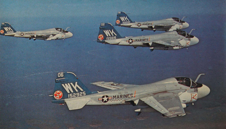 Four colourfully-marked A-6As of the US Marine Corps squadron VMA-324, one of five Marine units currently flying the Intruder (now re-equipped with A-6Es)
