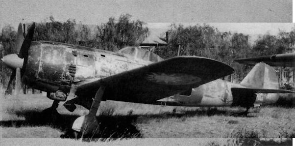 Значительное количество Ki-84 пережили войну, в том числе и эти машины, захваченные на одном из японских аэродромов. За Ki-84 виден учебно-тренировочный самолет Tachikawa Ki-55 "lda".