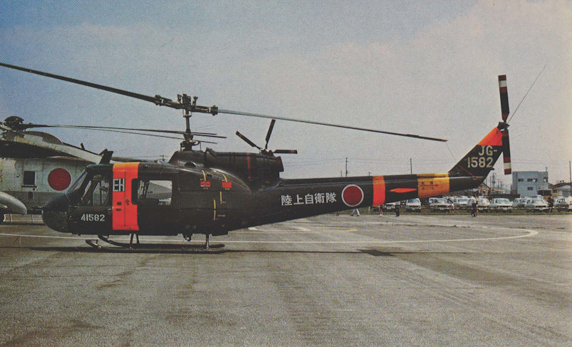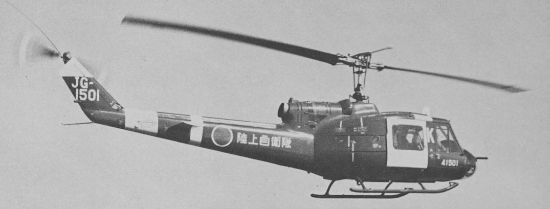 Регистрационный номер: JG-1501 The UH-1B Iroquois, built under licence by Fuji, has now seen some 12 years service with the GSDF and is currently being supplemented by the UH-1H. As a potential successor to the Iroquois, the GSDF is studying the US Army's UTTAS programme with a view to phasing in a replacement type from late in the present decade.