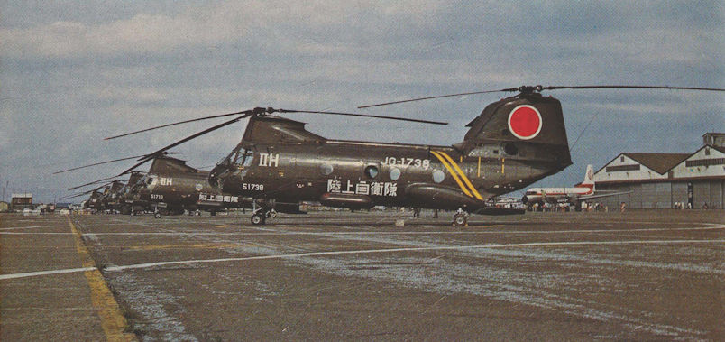 Регистрационный номер: JG-1738 The Kawasaki-built V-107-II helicopter, seen in service with the Hokubu Homen Herikoputa-tai, is the largest aircraft in GSDF service.