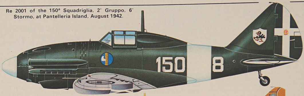 Re 2001 of the 150a Squadriglia, 2a Gruppo, 6a Stormo, at Pantelleria Island, August 1942.