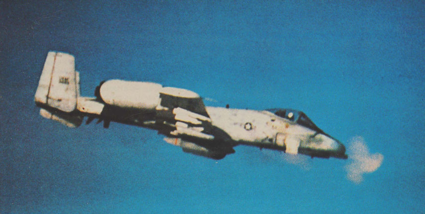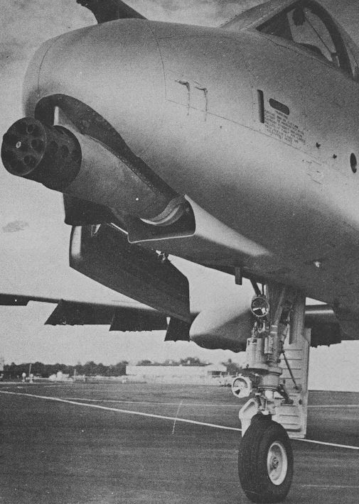 The Fairchild A-10A, newest ground attack aircraft in the USAF armoury, carries a 30-mm GAU-8 rotary-barrel cannon designed specifically for the close air support role and to ensure a high probability of tank kill on a single strafing pass.