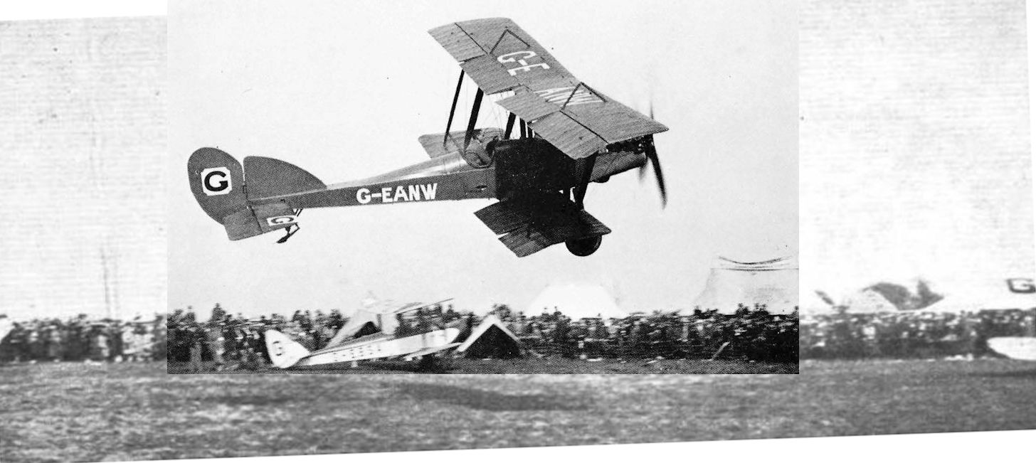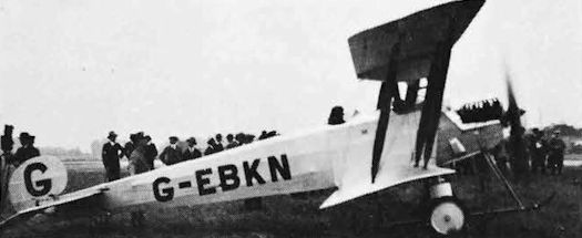 Регистрационный номер: G-EANW, G-EBSA, C7185 B.E.2e G-EANW ex C7185 (80hp Renault) appearing at a flying display at Hadleigh in April 1928. Though listed in this register it was written-off in February 1929. In the background is DH.60X G-EBSA.
