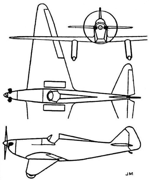 The third Gordon Dove G-AEZB was redesigned and was described by one of its owners, the late Harold Best-Deveraux, as having a new fin and rudder without bracing, increased area tailplane and elevators and a trousered undercarriage. The three-view, based on a manufacturer's drawing, matches H.B-D's description and is believed to show the redesign, although no photographs to prove this appear to have survived its last accident. G-AEZB c/n 3 had A to F No.136.