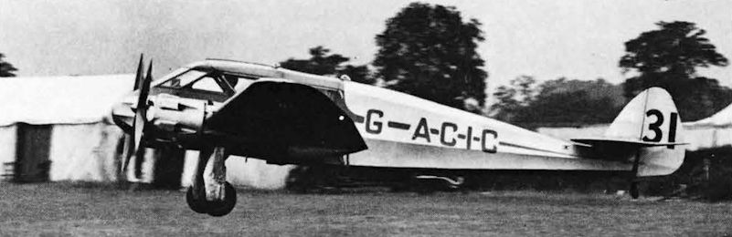 Регистрационный номер: G-ACIC General Aircraft Monospar ST6 G-ACIC c/n 20 wearing race no. 31 taking off for the 1934 King's Cup in which it was flown by Charles Gardner. It was used for joyriding by the Romford Flying Club between August and December 1938 and the evidence below suggests that it was not destroyed by the fire as is usually quoted.