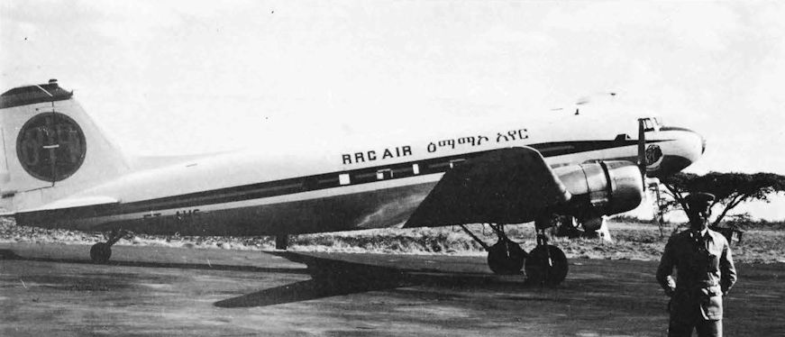Регистрационный номер: ET-AJG One of RRC Air's most recent acquisitions is this ex-EAF C-47A ET-AJG in bare metal with a white top and a new RRC emblem and Ethiopian flag on the fin at Addis Ababa on 23.1.88.