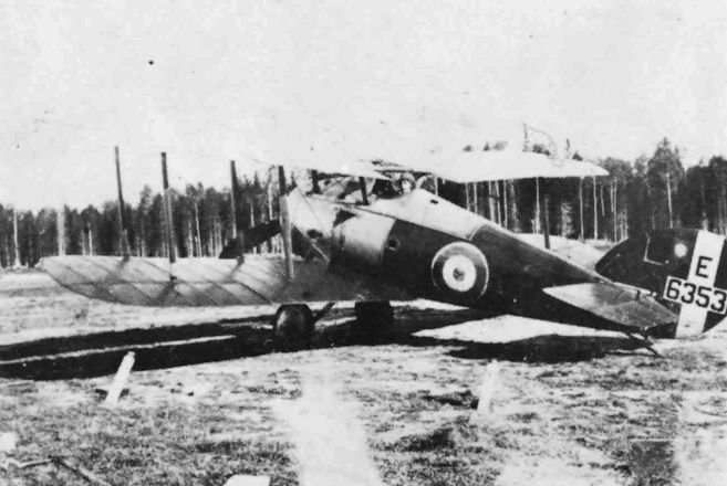 Регистрационный номер: E6353 In 1919, an expeditionary force was sent to Archangel in North Russia to protect large stocks of equipment originally consigned to the Russian army before the new government was overthrown by a Communist coup. This soon developed into support for the local White Russian forces. Among the aircraft sent was a small air unit of which the three aircraft illustrated were a part. The photographs were taken at Obozeikaya and are of "A" Flight aircraft. They are D.H.9 F1142, B7914, a rebuilt Sopwith 1 1/2-strutter and Snipe E6353 (shown), built by Boulton & Paul.