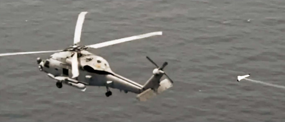 Вертолет MH-60S во время «охоты» на БПЛА «Flanker» в ходе учений «Black Dart» 2015 г