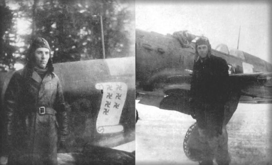 Замкомэск А.П. Чернобай из 875-го ИАП 274-й ИАД 1-го ИАК 3-й ВА на фоне своего Як-7б. Зима 1942-1943 гг.