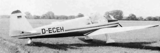 Регистрационный номер: D-EFIH This unusual version of the Klemm Kl 107C was exhibited at Hanover 2.5.60 as an agricultural aircraft. D-EFIH c/n 138 had a pair of underwing tanks faired into the undercarriage legs, spraybars and a wind-powered generator under the front fuselage.