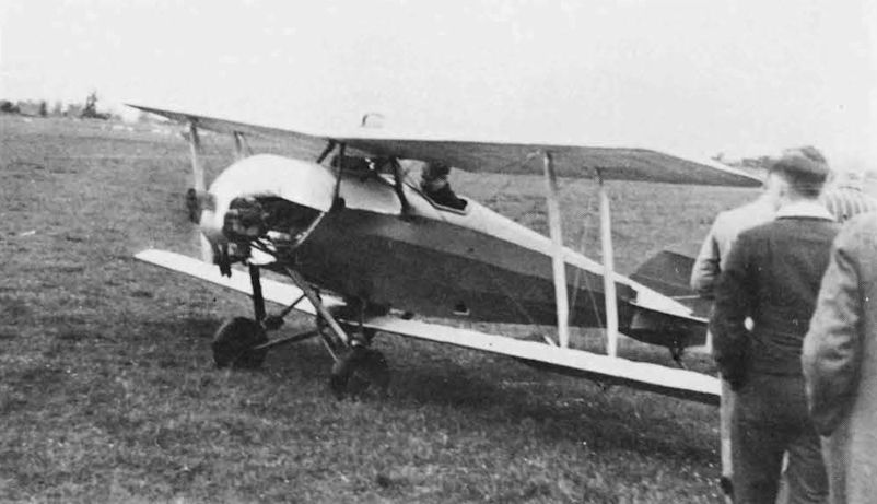 Регистрационный номер: G-AAFH Prototype Parnall Elf G-AAFH c/n 1 pushed out at Yate to be photographed after painting. Structure was mostly wood with ply box fuselage and fabric covered wings which could be folded to a width of 7ft 11in. The 105 hp Hermes 4-cyl upright in-line engine was completely cowled, fuel from the 20-gal fuselage tank being pumped up to the 3-gal gravity tank in the slim centre section of the top wing.