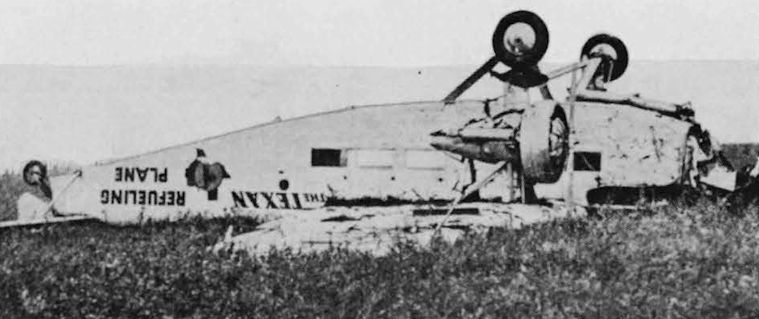 Регистрационный номер: NR9648 James Mattern's Ford Trimotor NR9648 after it crashed while attempting to land in foggy conditions at Fairbanks, Alaska on 21.8.37. As indicated by the lettering on the fuselage it was intended to use the Ford to refuel Mattern's Lockheed 12 "The Texan" in flight on a projected trans-Polar flight.