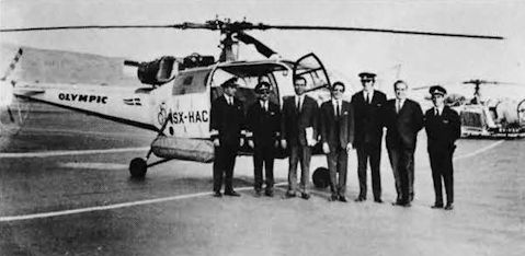 Регистрационный номер: SX-HAC Olympic Airways SE.3160 Alouette III SX-HAC with, in the centre of the group, Alexander Onassis the son of the airline's founder Aristotle Onassis.