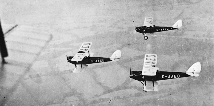Регистрационный номер: G-AACU, G-AAEO, G-AAKM, AV995, EI-ABB, VP-RAF, VT-AJP Three Moths of the DH School of Flying photographed from another in October 1929. G-AACU is a DH.60M which lasted until impressed as AV995 in 1940. The other two were DH.60G, G-AAEO went to India in 1936 as VT-AJP, while G-AAKM went to Ireland in 1934 as EI-ABB.