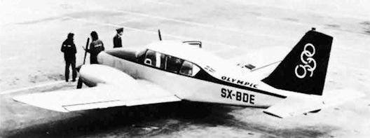 Регистрационный номер: SX-BDF Cherokee 140 in Olympic colours, SX-BDF seen at Athens on 7.5.70.