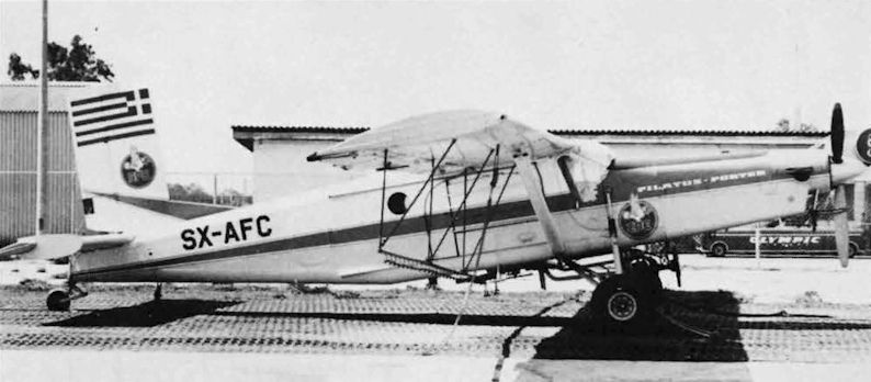 Регистрационный номер: SX-AFC One of the two Pilatus Porters operated by S.P.E. AE SX-AFC shows its underwing spray gear to good advantage at Athens.