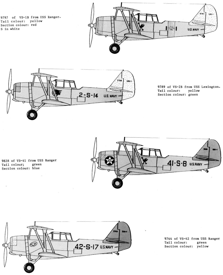 Service finish of both the SBU-1 and SBU-2 was aluminium overall, except for upper surface of top wing which was chrome yellow. Squadron colours comprised tail coloured according to parent ship and section colours applied to nose/fuselage as detailed in AM.2/86. Chevron on upper wing applied in section colours.