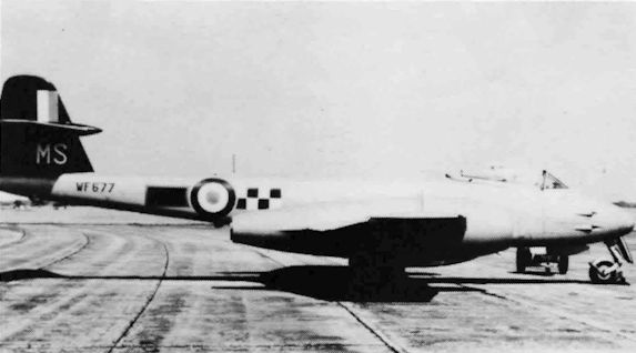 Регистрационный номер: WF677 [3] Meteor F.8 WF677 at Church Fenton, August 1956