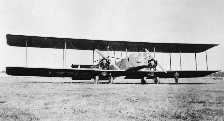 Регистрационный номер: J7717 Virginia X J7717, presumably at Radlett in view of the civilian posed in front. Note the underwing radiators for the Napier Lion Vs