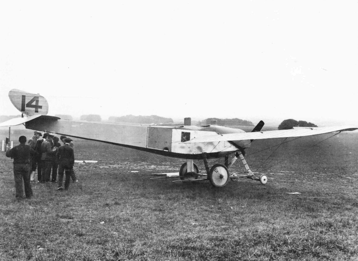 Entered in the Larkhill trials in August 1912 the Bristol-Coanda carried its competition number 14 on the rudder. Two were entered, Nos.105 and 106, and were powered by 80 hp Gnomes. The Coanda of the title was a Romanian who had designed a biplane driven by a ducted fan making it appear to be the first jet aircraft!