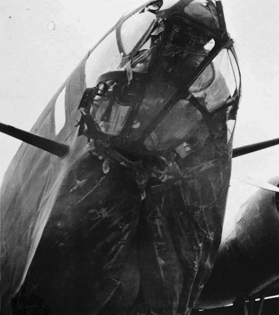 The sort of damage done by a nose wheel collapse in a Liberator is shown here and can be seen to be major. A factor was the construction of the deep nose on this type which was relatively unobstructed. This allowed a wayward nose wheel to penetrate into the navigator's space, taking most of the floor with it. The stress on the remainder of the fuselage distorted the airframe and with repair facilities stretched to the limit, major rebuilding jobs were unproductive. The damaged airframes were stripped for spares to keep other Liberators in the air.Самолёты на фотографии: Consolidated B-24 Liberator - США - 1939