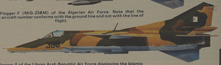 Flogger-F (MiG-23BM) of the Algerian Air Force. Note that the individual aircraft number conforms with the ground line and not with the line ot flight.