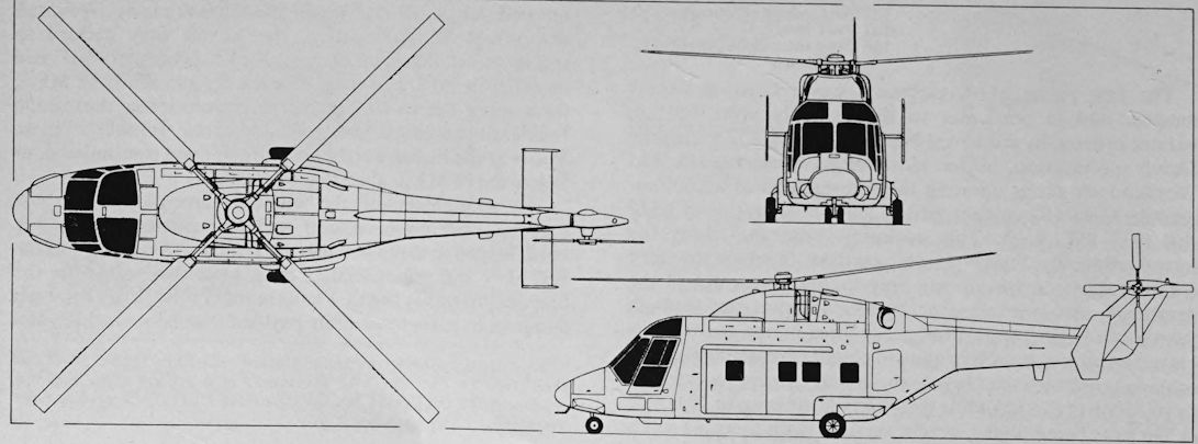 A three-view drawing of the Lynx Mk 3.