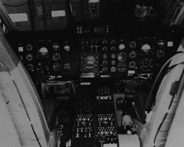 The cockpit of an Airspur Westland 30 Series 100, with fully duplicated flight instruments and a colour weather radar display scope in the centre.