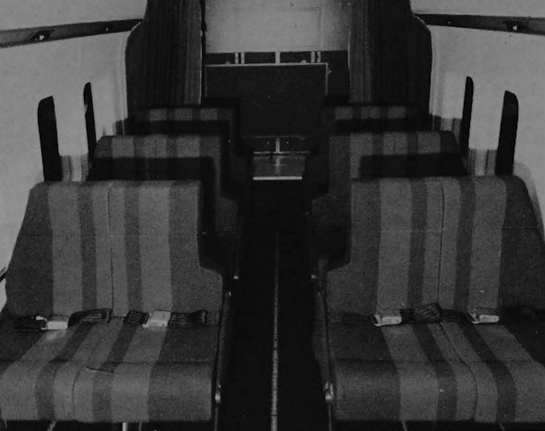 The Airspur passenger cabin, looking aft; seat colours match the external trim of the helicopter.