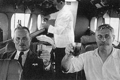 A steward serves refreshments on a D.H.86 as it flies the Singapore-Darwin route. Youell flew this route for some three months until Australian airline Qantas supplied its own staff.
