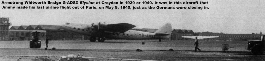 Регистрационный номер: G-ADSZ Armstrong Whitworth Ensign G-ADSZ Elysian at Croydon in 1939 or 1940. It was in this aircraft that Jimmy made his last airline flight out of Paris, on May 9, 1940, just as the Germans were closing in.