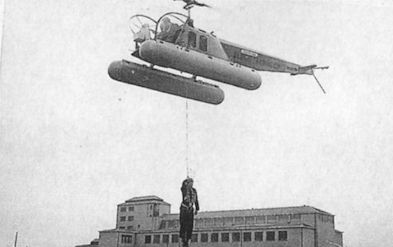 A demonstration of air-sea rescue at Prestwick. The person being lifted generally found the experience not too harrowing - once the rope stopped twisting.