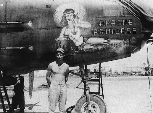 T/Sgt Paul Haller was the crew chief of the 501st's Apache Princess. He is seen here in front of the aeroplane's extremely colourful nose art at Tacloban in January 1945. Note the damage to the skin caused by the blasts from the 0-50in machine-guns.