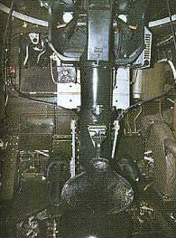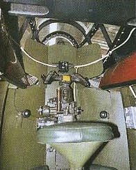 The top turret mechanism, seen from the front, with the original folding seat folded into the down position.