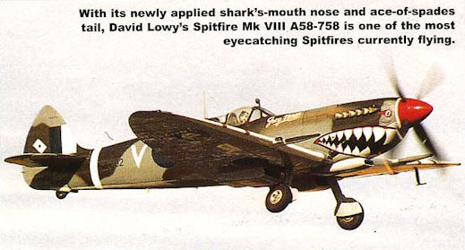 Регистрационный номер: A58-758, MV239 With its newly applied shark's-mouth nose and ace-of-spades tail, David Lowy's Spitfire Mk VIII A58-758 is one of the most eyecatching Spitfires currently flying.