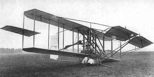 Cody's new aeroplane, destined to become famous as the "Michelin Cup biplane", in its earliest form, at Farnborough in June 1910. Although only one of the intended two 60 h.p. Green engines is installed, the bed for the other may be discerned.
