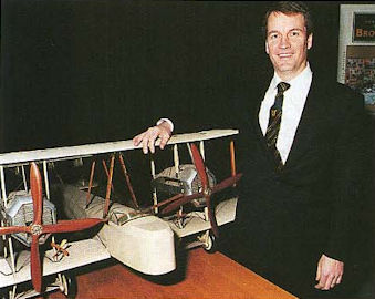 Peter with one of two large scale models of Alcock and Brown's transatlantic Vimy owned by the Brooklands Museum and on display during the event.