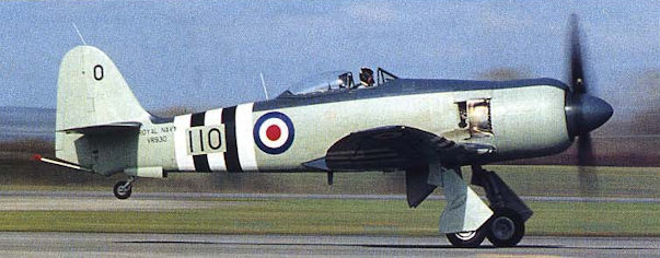 Регистрационный номер: VR930 Steve Noujaim powers Sea Fury VR930 down the Yeovilton runway for its first post-rebuild flight on March 1, 2001.